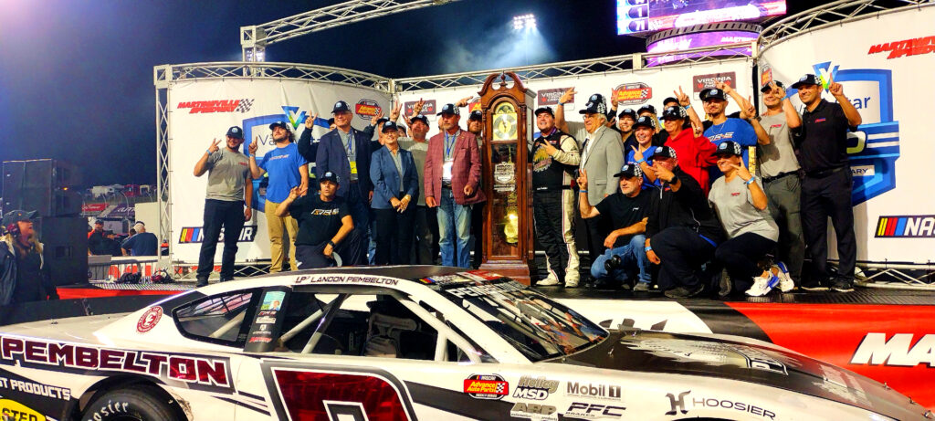 After all of the heat races are complete, Carson Loftin and Lee Pulliam will lead the field to green. The start is less than ideal however as a stackup collects multiple cars before they even get a chance to see the start/finish line. Once the race does get going, it’s a showcase of fantastic Late Model Stock racing. Aggressive moves, side by side battles, and determination on full display. The aggression goes a little too far though come halfway as Tristan McKee makes contact with Sam Yarbrough’s right rear quarter, sending him into the outside frontstretch wall hard. Yarbrough and his team owners are none too happy as Yarbrough’s night comes to an abrupt end. Through all of the chaos, two drivers seem to be the cream of the crop: Landon Pembelton and Lee Pulliam. They battle elbow to elbow in the closing laps, with Pulliam gaining the advantage coming to the white. But the caution flies. Two laps to settle it all at Martinsville. Pembelton gives Pulliam a shot. Pulliam returns the favor as they come to the line side by side! By inches, Pembelton collects his second Grandfather Clock!
